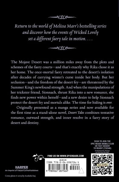 Return to the world of Melissa Marr's bestselling series and discover how the events of Wicked Lovely set a different faery tale in motion. . . . Originally presented as a manga series and now available for the first time as a stand-alone novel, Desert Tales combines tentative romance, outward strength, and inner resolve in a faery story of desert and destiny. The Mojave Desert was a million miles away from the plots and schemes of the Faerie Courts--and that's exactly why Rika chose it as her home. The once-mortal faery retreated to the desert's isolation after decades of carrying winter's curse inside her body. But her seclusion--and the freedom of the desert fey--is threatened by the Summer King's newfound strength. And when the manipulations of her trickster friend, Sionnach, thrust Rika into a new romance, she finds new power within herself--and a new desire to help Sionnach protect the desert fey and mortals alike. The time for hiding is over.