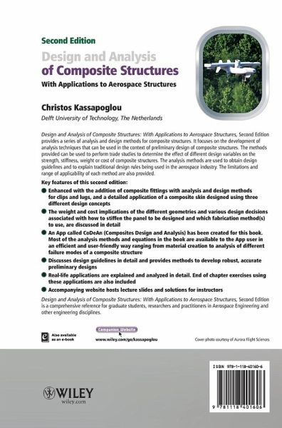 New edition updated with additional exercises and two new chapters. Design and Analysis of Composite Structures: With Applications to Aerospace Structures, 2nd Edition builds on the first edition and includes two new chapters on composite fittings and the design of a composite panel, as well additional exercises. The book enables graduate students and engineers to generate meaningful and robust designs of complex composite structures. A compilation of analysis and design methods for structural components made of advanced composites, it begins with simple parts such as skins and stiffeners and progresses through to applications such as entire components of fuselages and wings. It provides a link between theory and day-to-day design practice, using theory to derive solutions that are applicable to specific structures and structural details used in industry. Starting with the basic mathematical derivation followed by simplifications used in real-world design, Design and Analysis of Composite Structures: With Applications to Aerospace Structures, 2nd Edition presents the level of accuracy and range of applicability of each method along with design guidelines derived from experience combined with analysis. The author solves in detail examples taken from actual applications to show how the concepts can be applied, solving the same design problem with different methods based on different drivers (e.g. cost or weight) to show how the final configuration changes as the requirements and approach change. Each chapter is followed by exercises that represent specific design problems often encountered in the aerospace industry but which are also applicable in the in the automotive, marine, and construction industries. * Updated to include additional exercises, that represent real design problems encountered in the aerospace industry, but which are also applicable in the in the automotive, marine, and construction industries. * Includes two new chapters. One on composite fittings and another on application and the design of a composite panel. * Provides a toolkit of analysis and design methods that enable engineers and graduate students to generate meaningful and robust designs of complex composite structures. * Provides solutions that can be used in optimization schemes without having to run finite element models at each iteration; thus speeding up the design process and allowing the examination of many more alternatives than traditional approaches. * Supported by a complete set of lecture slides and solutions to the exercises hosted on a companion website for instructors. An invaluable resource for Engineers and graduate students in aerospace engineering as well as Graduate students and engineers in mechanical, civil and marine engineering.
