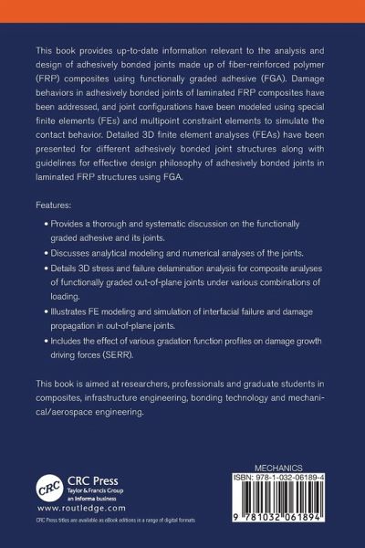 This book provides up-to-date information relevant to analysis and design of adhesively bonded joints made up Fibre Reinforced Polymer (FRP) composites using Functionally Graded Adhesive (FGA). Damage behaviours have been addressed and joint configurations have been modelled using special finite elements including 3D finite element analyses.