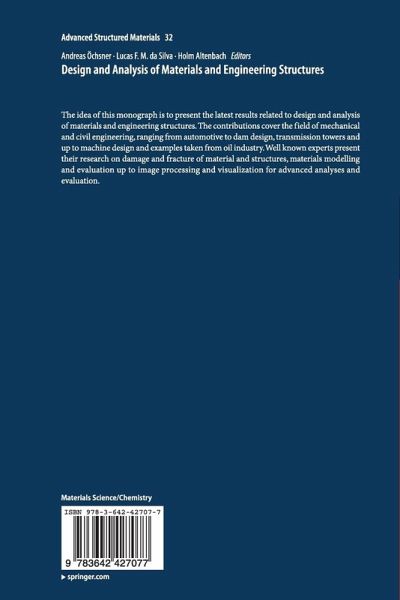 The idea of this monograph is to present the latest results related to design and analysis of materials and engineering structures. The contributions cover the field of mechanical and civil engineering, ranging from automotive to dam design, transmission towers and up to machine design and exmaples taken from oil industry. Well known experts present their research on damage and fracture of material and structures, materials modelling and evaluation up to image processing and visualization for advanced analyses and evaluation