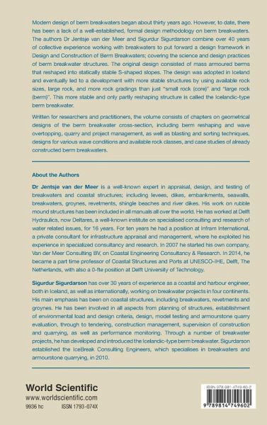 Modern design of berm breakwaters began about thirty years ago. However, to date, there has been a lack of a well-established, formal design methodology on berm breakwaters. The authors Dr Jentsje van der Meer and Sigurdur Sigurdarson combine over 40 years of collective experience working with breakwaters to put forward a design framework in Design and Construction of Berm Breakwaters; covering the science and design practices of berm breakwater structures. The original design consisted of mass armoured berms that reshaped into statically stable S-shaped slopes. The design was adopted in Iceland and eventually led to a development with more stable structures by using available rock sizes, large rock, and more rock gradings than just "small rock (core)" and "large rock (berm)". This more stable and only partly reshaping structure is called the Icelandic-type berm breakwater. Written for researchers and practitioners, the volume consists of chapters on geometrical designs of the berm breakwater cross-section, including berm reshaping and wave overtopping, quarry and project management, as well as blasting and sorting techniques, designs for various wave conditions and available rock classes, and case studies of already constructed berm breakwaters.