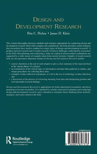 This volume thoroughly discusses methods and strategies appropriate for conducting design and development research. Rich with examples and explanations, the book describes actual strategies that researchers have used to conduct: 1) product and tool research and 2) model research.