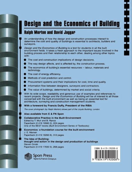 A textbook on design economics for students of architecture, building and quantity surveying, it examines the links between design and the costs of building as well as more general economic issues and their significance for designers and builders.