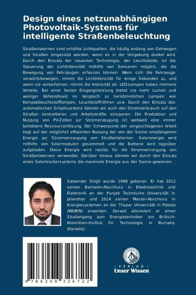 Straßenlaternen sind erhöhte Lichtquellen, die häufig entlang von Gehwegen und Straßen eingesetzt werden, wenn es in der Umgebung dunkel wird. Durch den Einsatz der neuesten Technologie, der Leuchtdiode, ist die Steuerung der Lichtintensität mithilfe von Sensoren möglich, die die Bewegung von Fahrzeugen erfassen können. Wenn sich die Fahrzeuge vorwärtsbewegen, nimmt die Lichtintensität für einige Sekunden zu, und wenn sie vorbeifahren, nimmt die Intensität ab. LED-Lampen haben mehrere Vorteile. Bei einer festen Eingangsleistung bietet sie mehr Lumen und weniger Kohlendioxid im Vergleich zu herkömmlichen Lampen wie Kompaktleuchtstofflampen, Leuchtstoffröhren usw. Durch den Einsatz des automatischen Schaltsystems können wir auch den Stromverbrauch auf den Straßen kontrollieren und Arbeitskräfte einsparen. Die Produktion und Nutzung von PV-Zellen zur Stromerzeugung ist weltweit eine immer beliebtere Ressourcenlösung. Der Schwerpunkt der vorgeschlagenen Arbeit liegt auf der möglichsteffizienten Nutzung der von der Sonne empfangenen Energie zur Stromversorgung von Straßenlaternen. Solarenergie wird mithilfe von Solarmodulen gesammelt und die Batterie wird tagsüber aufgeladen. Diese Energie wird nachts für die Stromversorgung von Straßenlaternen verwendet. Darüber hinaus können wir durch den Einsatz eines Solartrackersystems die maximale Energie aus der Sonne gewinnen.
