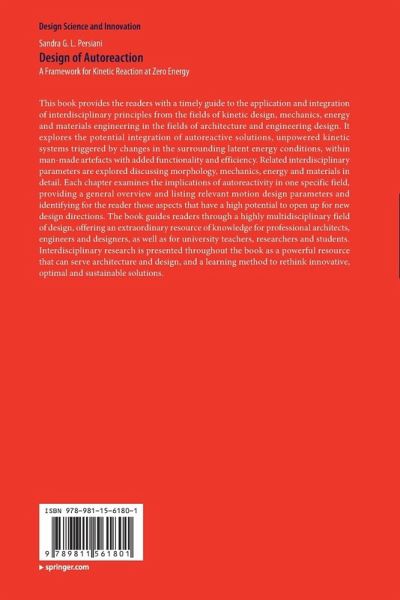 This book provides the readers with a timely guide to the application and integration of interdisciplinary principles from the fields of kinetic design, mechanics, energy and materials engineering in the fields of architecture and engineering design. It explores the potential integration of autoreactive solutions, unpowered kinetic systems triggered by changes in the surrounding latent energy conditions, within man-made artefacts with added functionality and efficiency. Related interdisciplinary parameters are explored discussing morphology, mechanics, energy and materials in detail. Each chapter examines the implications of autoreactivity in one specific field, providing a general overview and listing relevant motion design parameters and identifying for the reader those aspects that have a high potential to open up for new design directions. The book guides readers through a highly multidisciplinary field of design, offering an extraordinary resource of knowledge for professionalarchitects, engineers and designers, as well as for university teachers, researchers and students. Interdisciplinary research is presented throughout the book as a powerful resource that can serve architecture and design, and a learning method to rethink innovative, optimal and sustainable solutions.