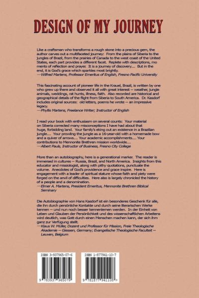 An Autobiography: The reader is immersed in cultures - Russia, Brazil, and North America. Insights from an educator and missiologist, along with pithy quotations, punctuate the volume. Here is engagement with a leader of spiritual stature whose faith and piety were forged on the anvil of difficulties. Here also is largely chronicled the history of a people and a denomination.
