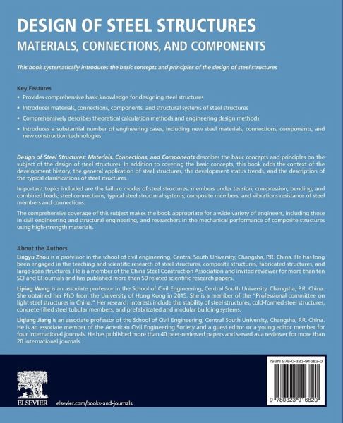 Design of Steel Structures: Materials, Connections, and Components systematically introduces the basic concepts and principles of the subject of "Design of steel structure". Sections cover materials, failure modes of steel structures, members under tension, compression, bending and combined loads, steel connections, typical steel structural systems, composite members and vibrations resistance of steel members and connections. In addition, development history and the general application of steel structures are introduced, along with development status trends and typical classifications of steel structures. Other chapters discuss materials of steel structures, including high-performance steel, cold-formed steel, and other new types.