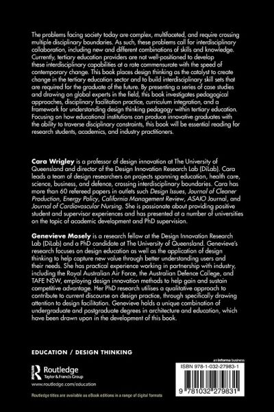 The problems facing society today are complex, multifaceted, and require crossing multiple disciplinary boundaries. As such, these problems call for interdisciplinary collaboration, including new and different combinations of skills and knowledge. Currently, tertiary education providers are not well-positioned to develop these interdisciplinary capabilities at a rate commensurate with the speed of contemporary change. This book places design thinking as the catalyst to create change in the tertiary education sector and to build interdisciplinary skill sets that are required for the graduate of the future. By presenting a series of case studies and drawing on global experts in the field, this book investigates pedagogical approaches, disciplinary facilitation practice, curriculum integration, and a framework for understanding design thinking pedagogy within tertiary education. Focusing on how educational institutions can produce innovative graduates with the ability to traverse disciplinary constraints, this book will be essential reading for research students, academics, and industry practitioners.