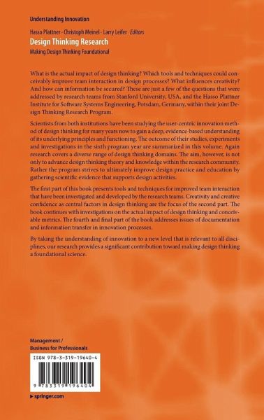This book summarizes the results of Design Thinking Research carried out at Stanford University in Palo Alto, California, USA and Hasso Plattner Institute in Potsdam, Germany. The authors offer readers a closer look at Design Thinking with its processes of innovations and methods. The contents of the articles range from how to design ideas, methods and technologies via creativity experiments and wicked problem solutions, to creative collaboration in the real world and the connectivity of designers and engineers. But the topics go beyond this in their detailed exploration of design thinking and its use in IT systems engineering fields and even from a management perspective. The authors show how these methods and strategies work in companies, introduce new technologies and their functions and demonstrate how Design Thinking can influence as diverse a topic area as marriage. Furthermore, we see how special design thinking use functions in solving wicked problems in complex fields. Thinking and creating innovations are basically and inherently human - so is Design Thinking. Due to this, Design Thinking is not only a factual matter or a result of special courses nor of being gifted or trained: it's a way of dealing with our environment and improving techniques, technologies and life.