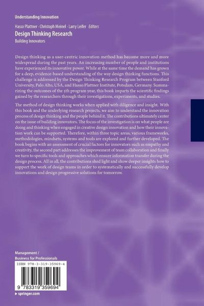 The method of design thinking works when applied with diligence and insight. With this book and the underlying research projects, we aim to understand the innovation process of design thinking and the people behind it. The contributions ultimately center on the issue of building innovators. The focus of the investigation is on what people are doing and thinking when engaged in creative design innovation and how their innovation work can be supported.