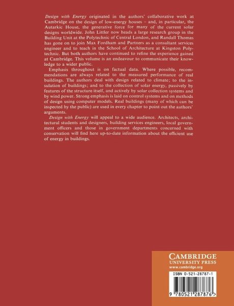 Units, symbols, abbreviations, conventions and conversion factors; Preface; 1. Energy and buildings; 2. Site planning and analysis; 3. Building design; 4. Passive solar design; 5. Active solar heating; 6. Space heating and ventilation; 7. Thermal storage; 8. Wind energy; 9. Water-supply systems; 10. Waste disposal and utilization; 11. Domestic-energy saving; 12. Housing case studies; 13. Non-domestic case studies; Appendix; Index.