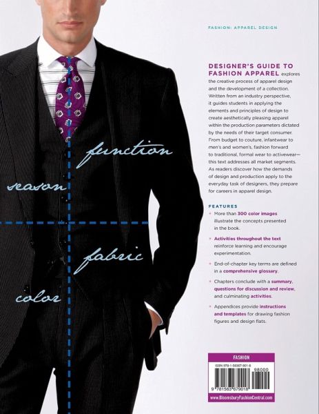 Designer's Guide to Fashion Apparel explores the creative process of apparel design and the development of a collection. From budget to couture, children's to men's and women's, fashion-forward to traditional and formal to active, the text demonstrates the proper application of design principles in creating aesthetically-pleasing apparel while emphasizing the importance of production parameters as dictated by the needs of the target consumer. Written from an industry perspective, the book is intended to nurture the student's interest in design while providing the thorough grounding needed for a successful career in the business.