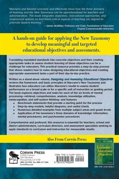 About the Authors 1. A New Perspective on Educational Objectives 2. The New Taxonomy in Brief 3. Retrieval Objectives and Tasks 4. Comprehension Objectives and Tasks 5. Analysis Objectives and Tasks 6. Knowledge Utilization Objectives and Tasks 7. Metacognition Objectives and Tasks 8. Self-System Objectives and Tasks 9. The New Taxonomy as a Scale for Student Performance Afterword References Index