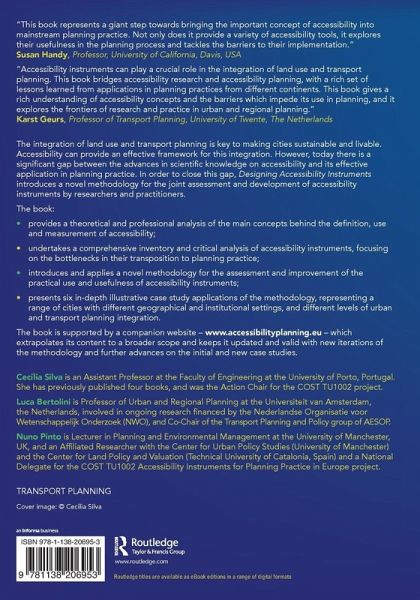 To close the gap between the advances in scientific knowledge on accessibility and its effective application in planning practice, Designing Accessibility Instruments introduces a novel methodology for the joint assessment and development of accessibility instruments by researchers and practitioners.