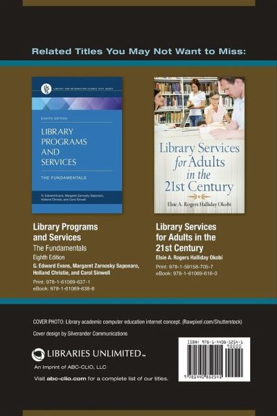 Focusing on adult patrons ages 19 through senior citizens, this book explains how libraries can best serve this portion of their community's population at different life stages and foster experiences that are "worth the trip"-whether actual or virtual. Adult library patrons are busier than ever before-working, taking classes and studying for advanced degrees, caring for children, helping their aging parents, taking care of their homes or rental properties, planning and nurturing careers, managing investments and retirement funds, and inevitably retiring. Each of these endeavors can require highly specific learning and education. Throughout their lives, adults continue to have different information needs that the library and its services can fill. Designing Adult Services: Strategies for Better Serving Your Community discusses the many ways libraries can serve adults of various ages and at different life stages, covering online services, collection development, programming, and lifelong learning. This guide's unique approach simplifies the processes of designing and carrying out a successful adult services program for adult library users in all the various stages of life. The book is organized by age groups, with the respective information needs and life challenges. Each chapter suggests programs, services, and collection development strategies for the life stages. Public library administrators and managers as well as adult services librarians in public libraries will find this guide a must-read.