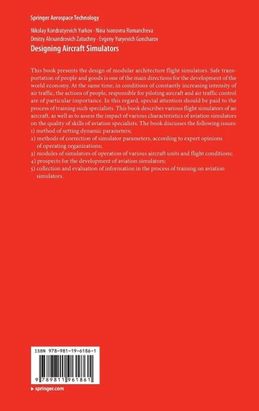 Introduction. Chapter 1: The state and prospects of development of aviation simulator construction. Chapter 2: Complex simulators of transport aircraft. Chapter 3: Identification of systems and control tasks in the development of aviation simulators. Chapter 4: Some issues of practical development of flight dynamics simulators. Chapter 5: Creation of a virtual educational environment for training air traffic dispatchers.
