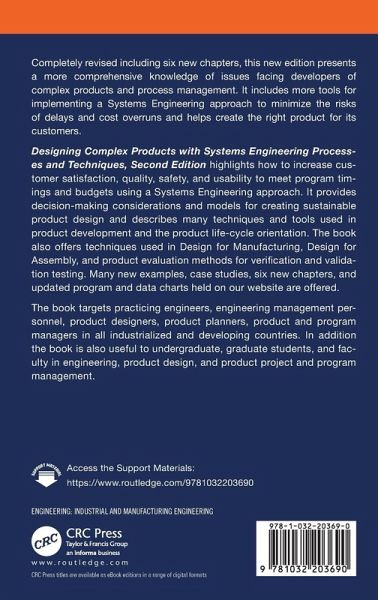 Completely revised including six new chapters, this new edition presents a more comprehensive knowledge of issues facing developers of complex products and process management. It includes more tools for implementing a Systems Engineering approach to minimize the risks of delays and cost overruns and helps create the right product for its customers. Designing Complex Products with Systems Engineering Processes and Techniques, Second Edition highlights how to increase customer satisfaction, quality, safety, and usability to meet program timings and budgets using a Systems Engineering approach. It provides decision-making considerations and models for creating sustainable product design and describes many techniques and tools used in product development and the product life-cycle orientation. The book also offers techniques used in Design for Manufacturing, Design for Assembly, and product evaluation methods for verification and validation testing. Many new examples, case studies, six new chapters, and updated program and data charts held on our website are offered. The book targets practicing engineers, engineering management personnel, product designers, product planners, product and program managers in all industrialized and developing countries. In addition the book is also useful to undergraduate, graduate students, and faculty in engineering, product design, and product project and program management.