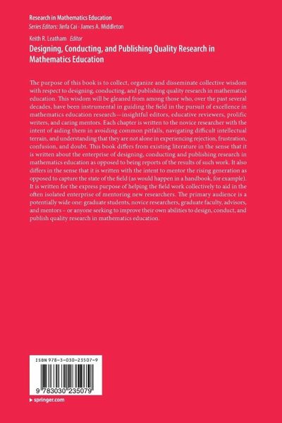 The purpose of this book is to collect, organize and disseminate collective wisdom with respect to designing, conducting, and publishing quality research in mathematics education. This wisdom will be gleaned from among those who, over the past several decades, have been instrumental in guiding the field in the pursuit of excellence in mathematics education research-insightful editors, educative reviewers, prolific writers, and caring mentors. Each chapter is written to the novice researcher with the intent of aiding them in avoiding common pitfalls, navigating difficult intellectual terrain, and understanding that they are not alone in experiencing rejection, frustration, confusion, and doubt. This book differs from existing literature in the sense that it is written about the enterprise of designing, conducting and publishing research in mathematics education as opposed to being reports of the results of such work. It also differs in the sense that it is written with the intent to mentor the rising generation as opposed to capture the state of the field (as would happen in a handbook, for example). It is written for the express purpose of helping the field work collectively to aid in the often isolated enterprise of mentoring new researchers. The primary audience is a potentially wide one: graduate students, novice researchers, graduate faculty, advisors, and mentors - or anyone seeking to improve their own abilities to design, conduct, and publish quality research in mathematics education.