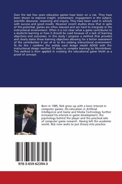 Over the last few years educative games have been on a rise. They have been shown to improve insight, involvement, engagement in the subject, scientific discourse, reasoning and inquiry. They have been used in schools with success and good results. However recent studies show that in spite of this potential, games are often misused and are hard to integrate in the instructional environment. Often it is not clear what a game contributes to a students learning or how it should be used because of a lack of learning objectives and outcomes. In this study I propose a method that provides and clearly states these learning objectives allowing for a better assessment of the contribution it can of er to the existing instructional environment. To do this I combine the widely used design model ADDIE with the instructional design method 10 steps to complex learning by Merriënboer. This method is then applied in creating the educational game Moth as a proof of concept.