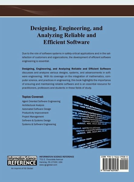 Due to the role of software systems in safety-critical applications and in the satisfaction of customers and organizations, the development of efficient software engineering is essential. Designing, Engineering, and Analyzing Reliable and Efficient Software discusses and analyzes various designs, systems, and advancements in software engineering. With its coverage on the integration of mathematics, computer science, and practices in engineering, this book highlights the importance of ensuring and maintaining reliable software and is an essential resource for practitioners, professors and students in these fields of study.