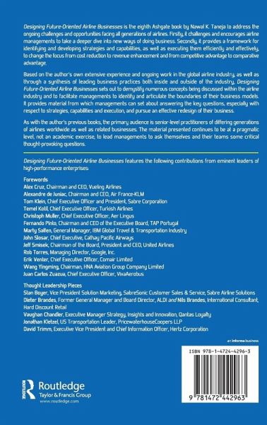 Designing Future-Oriented Airline Businesses is the eighth Ashgate book by Nawal K. Taneja to address the ongoing challenges and opportunities facing all generations of airlines. Firstly, it challenges and encourages airline managements to take a deeper dive into new ways of doing business. Secondly, it provides a framework for identifying and developing strategies and capabilities, as well as executing them efficiently and effectively, to change the focus from cost reduction to revenue enhancement and from competitive advantage to comparative advantage. Based on the author's own extensive experience and ongoing work in the global airline industry, as well as through a synthesis of leading business practices both inside and outside of the industry, Designing Future-Oriented Airline Businesses sets out to demystify numerous concepts being discussed within the airline industry and to facilitate managements to identify and articulate the boundaries of their business models. It provides material from which managements can set about answering the key questions, especially with respect to strategies, capabilities and execution, and pursue an effective redesign of their business. As with the author's previous books, the primary audience is senior-level practitioners of differing generations of airlines worldwide as well as related businesses. The material presented continues to be at a pragmatic level, not an academic exercise, to lead managements to ask themselves and their teams some critical thought-provoking questions.