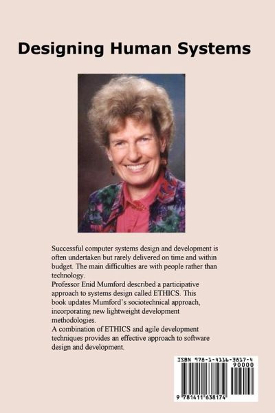 Enid Mumford (1924-2006) was a pioneer in the sociotechnical design of computer systems. Prof Mumford's work successfully investigated the introduction and implementation of computer systems by large corporations and governments. Mumford's ETHICS approach to software development emphasizes user participation, thus avoiding many of the problems of introducing new systems. It takes a holistic view of organizations, unifying both social and technological solutions. This updated edition of Mumford's book, Designing Human Systems, describes how modern agile programming techniques complement the ETHICS method. Together, the two methods cover both user and developer issues. This integrated approach offers an improved methodology for successful software development projects.