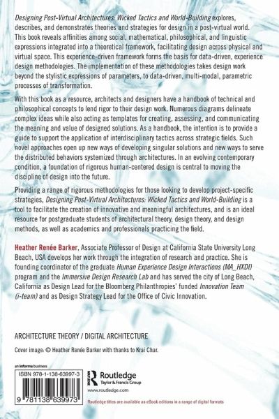 Designing Post-Virtual Architectures: Wicked Tactics and World-Building explores, describes, and demonstrates theories and strategies for design in a post-virtual world. This book reveals affinities among social, mathematical, philosophical, and language expressions integrated into a theoretical framework, facilitating design across physical and virtual space. This experience-driven framework forms the basis for data-driven, experience design methodologies. The implementation of these methodologies takes design work beyond the stylistic expressions of parameters, to data-driven, multi-modal, parametric processes of transformation. With this book as a resource, architects and designers have a handbook of technical and philosophical concepts to lend rigor to their design work. Numerous diagrams delineate complex ideas while also acting as templates for creating, assessing, and communicating the meaning and value of designed solutions. As a handbook, the intention is to provide a guide to support the application of interdisciplinary tactics across strategic fields. Such novel approaches open up new ways of developing singular solutions and new ways to serve the distributed behaviours systemized through architectures. In an evolving contemporary condition, a foundation of rigorous human-centred design is central to moving the discipline of design into the future. Providing a range of rigorous methodologies for those looking to develop project-specific strategies, Designing Post-Virtual Architectures: Wicked Tactics and World-Building is a tool to facilitate the creation of innovative and meaningful architectures, and is an ideal resource for postgraduate students of architectural theory, design theory and design methods, as well as academics and professionals practicing the field.