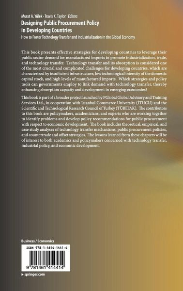 This book is part of a broader project launched by PGlobal Global Advisory and Training Services Ltd., in cooperation with Istanbul Commerce University (ITUCU) and the Scientific and Technological Research Council of Turkey (TÜBITAK). The contributors to this book are policymakers, academicians, and experts who areworking together to identify problems and develop policy recommendations for public procurement with respect to economic development. The book includes theoretical, empirical, and case study analyses of technology transfer mechanisms, public procurement policies, and countertrade and offset strategies. The lessons learned from these chapters will be of interest to both academics and policymakers concerned with technology transfer, industrial policy, and economic development.