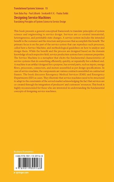 This book presents a general conceptual framework to translate principles of system science and engineering to service design. Services are co-created immaterial, heterogeneous, and perishable state changes. A service system includes the intended benefit to the customer and the structure and processes that accomplish this benefit. The primary focus is on the part of the service system that can reproduce such processes, called here a Service Machine, and methodological guidelines on how to analyze and design them. While the benefit and the process are designed based on the domain knowledge of each respective field, service production systems have common properties. The Service Machine is a metaphor that elicits the fundamental characteristics of service systems that do something efficiently, quickly, or repeatedly for a defined end. A machine is an artifact designed for a purpose, has several parts, such as inputs, energy flows, processors, connectors, and motors assembled as per design specifications. In case of service machine, the components are various contracts assembled on contractual frames. The book discusses Emergency Medical Services (EMS) and Emergency Departments (ED) as cases. They illustrate that service machines need to be structured to adapt to the constraints of the served market acknowledging the fact that services are co-created through the integration of producers' and customers' resources. This book is highly recommended for those who are interested in understanding the fundamental concepts of designing service machines.