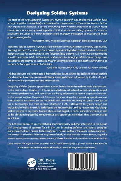 This book focuses on contemporary human factors issues within the design of soldier systems and describes how they are currently being investigated and addressed by the U.S. Army to enhance soldier performance and effectiveness. It appeals to an international multidisciplinary audience including defense contractors, program management offices, human factors engineers, human system integrators, system engineers, and computer scientists. Relevant programs of study include those in human factors, cognitive science, neuroscience, neuroergonomics, psychology, training and education, and engineering.…mehr