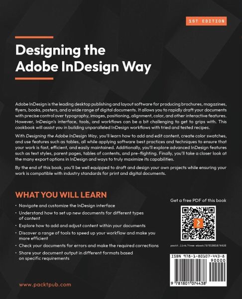 Layout multipage documents faster for print and digital output in this part-color guide, with consistent control over typography, color and positioning, all whilst using the latest Adobe InDesign 2023 features to automate repetitive and complex tasks Key Features - Create engaging design solutions for print and digital media such as posters, magazines, books, and brochures - Master the powerful tools InDesign offers to simplify complex tasks and avoid potentially disastrous mistakes - Discover InDesign best practices to increase productivity and speed up the design process with this illustrated guide Book Description Adobe InDesign is the leading desktop publishing and layout software for producing brochures, magazines, flyers, books, posters, and a wide range of digital documents. It allows you to rapidly draft your documents with precise control over typography, images, positioning, alignment, color, and other interactive features. However, InDesign's interface, tools, and workflows can be a bit challenging to get to grips with. This cookbook will assist you in building unparalleled InDesign workflows with tried and tested recipes. With Designing the Adobe InDesign Way, you'll learn how to add and edit content, create color swatches, and use features such as tables, all while applying software best practices and techniques to ensure that your work is fast, efficient, and easily maintained. Additionally, you'll explore advanced InDesign features such as text styles, parent pages, tables of contents, and pre-flighting. Finally, you'll take a closer look at the many export options in InDesign and ways to truly maximize its capabilities. By the end of this book, you'll be well equipped to draft and design your own projects while ensuring your work is compatible with industry standards for print and digital documents. What You Will Learn - Navigate and customize the InDesign interface - Understand how to set up new documents for different types of content - Explore how to add and adjust content within your documents - Discover a range of tools to speed up your workflow and make you more efficient - Check your documents for errors and make the required corrections - Share your document output in different formats based on specific requirements Who this book is for This book is for marketing and communications professionals, marketing executives, marketing managers, marketing assistants, communications officers, communications managers, graphic designers, publishers, bids and tender teams, PR professionals, and brand managers looking to gain a deep understanding of InDesign. Anyone seeking to learn InDesign to create more professional content and advance their skills will find the book useful. Table of Contents - Customizing the InDesign Interface and New Document Settings - Working with Text in InDesign - Creating and Using Tables - Using the InDesign Frame Tools - Adding Images to Your Document - Taking Images Further - Creating and Applying Parent Pages - Working with Colours and Gradients - Formatting with Paragraph and Character Styles - Generating and Updating a Table of Contents - Creating Interactivity and PDF Forms - Using and Collaborating with CC Libraries - Preflighting and Outputting