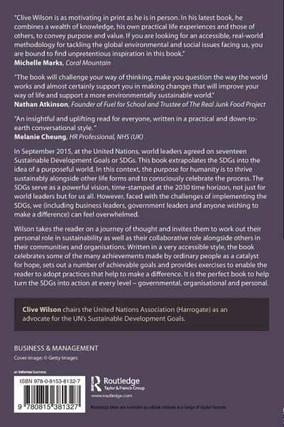 In September 2015, at the United Nations, world leaders agreed on seventeen Sustainable Development Goals or SDGs. This book extrapolates the SDGs into the idea of a purposeful world. In this context, the purpose for humanity is to thrive sustainably alongside other life forms and to consciously celebrate the process. The SDGs serve as a powerful vision, time-stamped at the 2030 time horizon, not just for world leaders but for us all. However, faced with the challenges of implementing the SDGs, we (including business leaders, government leaders and anyone wishing to make a difference) can feel overwhelmed. Wilson takes the reader on a journey of thought and invites them to work out their personal role in sustainability as well as their collaborative role alongside others in their communities and organisations. Written in a very accessible style, the book celebrates some of the many achievements made by ordinary people as a catalyst for hope, sets out a number of achievable goals and provides exercises to enable the reader to adopt practices that help to make a difference. It is the perfect book to help turn the SDGs into action at every level - governmental, organisational and personal.