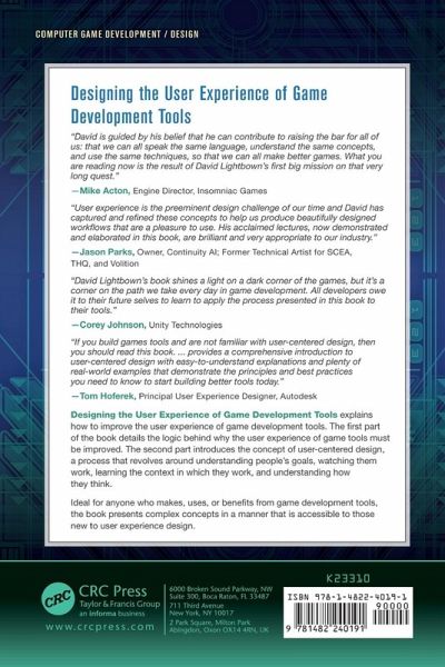 Most tools developers want to improve the user experience but are not given the time, lack the techniques, or don't know where to begin.Designing the User Experience of Game Development Tools addresses these issues to empower tools developers to make positive steps toward improving the user experience of their tools. The book explains how to improve the user experience of game development tools. The first part of the book details the logic behind why the user experience of game tools must be improved. The second part introduces the concept of user-centered design, a process that revolves around understanding people's goals, watching them work, learning the context in which they work, and understanding how they think. Ideal for anyone who makes, uses, or benefits from game development tools, the book presents complex concepts in a manner that is accessible to those new to user experience design. The book illustrates many proven concepts and techniques using before-and-after examples from tools development to supply you with the real-world understanding you need to become a better game developer. It also describes how to get buy-in from your team. Although concepts have been simplified to make the information more easily accessible, the text includes resources in the footnotes if you want more details. The book includes access to a companion website, www.UXofGameTools.com, that contains the latest revisions for the book as well as contact information. You can also follow the official Twitter account @UXofGameTools to see the latest updates and articles related to the improvement of the user experience.