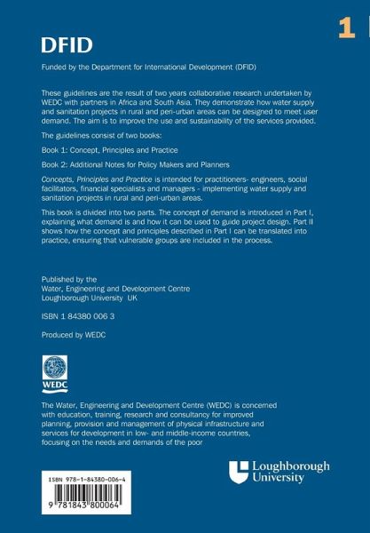 These guidelines are the result of two years collaborative research undertaken by WEDC with partners in Africa and South Asia. They demonstrate how water supply and sanitation projects in rural and peri-urban areas can be designed to meet user demand. The aim is to improve the use and sustainability of the services provided. The guidelines consist of three books: Book 1: Concept, Principles and Practice Book 2: Additional Notes for Policy Makers and Planners Book 3: Ensuring the Participation of the Poor.