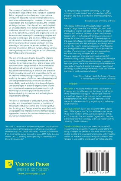 The concept of design has been defined in a multitude of ways and used in a variety of academic fields, ranging from the classics of organizational and system design to studies on corporate culture, aesthetics and consumption. However, in mainstream organization and management studies, the concept of design has been 'black-boxed' and easily implied as an updated (and more fashionable) version of the traditional idea of structuring organizational processes. At the same time, working and organizing seem to be embedded nowadays in increasingly complex and situated technologies and practices. If the spreading of information and communication technologies (ICTs) has changed workplaces (and even the very meaning of 'workplace' as an area marked by the physical presence of different human actors), working and organizing mobilizes the joint action of humans, technologies and knowledges. The aim of the book is thus to discuss the relations among technologies, work and organisations from multiple theoretical perspectives and to engage with questions about design as well as the sociomaterial foundations of working and organising. The book focuses on the close study of practices and processes that inextricably link work and organisation to the use of artefacts and technological systems (and vice versa), exploring by means of different cases of organizational and design research articulations and disarticulations of daily work and design; the doing of objects and technologies in everyday organizational life; the reconstruction of organizational processes through technological and design practices; the relation between learning, innovations and technologies in organizational settings. The book is addressed to graduate students, PhDs, scholars and researchers interested in the fields of Organization Studies, Science and Technology Studies, Sociology and Design, as well as to professionals and practitioners interested in new methodological approaches towards the relations between technology, work and organization.