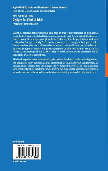 "'Designs for Clinical Trials: Perspectives on Current Issues' fills the gap between professional journals and school textbooks by addressing a few important, rapidly evolving statistical topics. The book is intended for statistical practitioners like clinical trialists who actively use statistics but do not follow the literature on recent biostatistical thinking." (Norman M. Goldfarb, Journal of Clinical Research Best Practices, Vol. 9 (2), February, 2013)