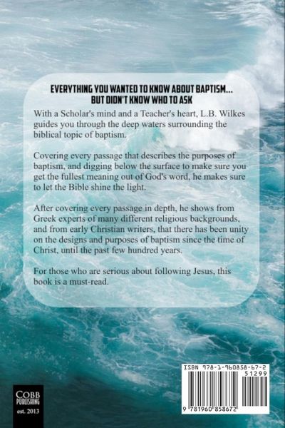 Everything You Wanted to Know About Baptism... but Didn't Know Who to Ask With a Scholar's mind and a Teacher's heart, L.B. Wilkes guides you through the deep waters surrounding the biblical topic of baptism. Covering every passage that describes the purposes of baptism, and digging below the surface to make sure you get the fullest meaning out of God's word, he makes sure to let the Bible shine the light. After covering every passage in depth, he shows from Greek experts of many different religious backgrounds, and from early Christian writers, that there has been unity on the designs and purposes of baptism since the time of Christ, until the past few hundred years. For those who are serious about following Jesus, this book is a must-read.