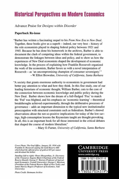 More than any of his predecessors in the White House, Franklin D. Roosevelt drew heavily on the thinking of economists as he sought to combat the Great Depression, to mobilize the American economy for war, and to chart a new order for the postwar world. Designs within Disorder is an inquiry into how divergent analytic perspectives competed for official favor and how the President chose among them when formulating economic policies. During the Roosevelt years, two "revolutions" were underway simultaneously. One of them involved a fundamental restructuring of the American economy and of the role government was to play in it. A second was an intellectual "revolution", which engaged economists in reconceptualizing the nature of their discipline. Most of the programmatic initiatives Roosevelt put in place displayed a remarkable staying power for over a half century.