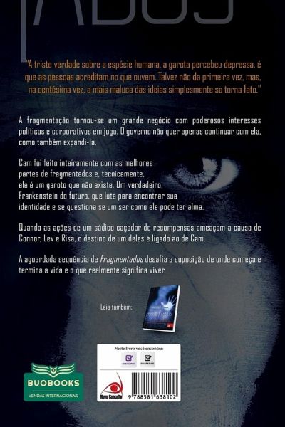 A Fragmentação tornou-se um grande negócio com poderosos interesses políticos e corporativos em jogo. O governo não quer apenas continuar com ela, como também expandi-la. Cam foi feito inteiramente com as melhores partes de fragmentados e, tecnicamente, ele é um garoto que não existe. Um verdadeiro Frankstein do futuro, que luta para encontrar sua identidade e se questiona se um ser como ele pode ter alma. Quando as ações de um sádico caçador de recompensas ameaçam a causa de Connor, Lev e Risa, o destino de um deles é ligado ao de Cam. A aguardada sequência de Fragmentados desafia a suposição de onde começa e termina a vida e o que realmente significa viver.