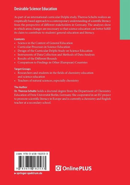 As part of an international curricular Delphi study, Theresa Schulte realizes an empirically based approach to a contemporary understanding of scientific literacy from the perspective of different stakeholders in Germany. The analyses show in which areas changes are necessary so that science education can better fulfill its claim to contribute to students' general education and literacy.