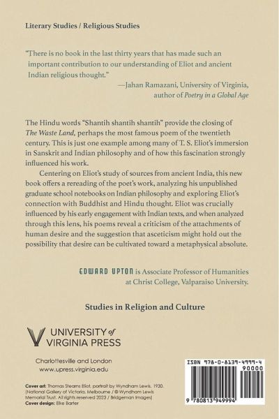 The Hindu words "Shantih shantih shantih" provide the closing of The Waste Land, perhaps the most famous poem of the twentieth century. This is just one example among many of T. S. Eliot's immersion in Sanskrit and Indian philosophy and how this fascination strongly influenced his work. Centering Eliot's study of sources from ancient India, this new book offers a rereading of the poet's work, analyzing his unpublished graduate school notebooks on Indian philosophy and exploring Eliot's connection with Buddhist thought. Eliot was crucially influenced by his early engagement with Indian texts, and when analyzed through this lens, his poems reveal a criticism of the attachments of human desire and the suggestion that asceticism might hold out the possibility that desire can be cultivated toward a metaphysical absolute. Full of such insights, Upton's book represents an important intervention in modernist studies.