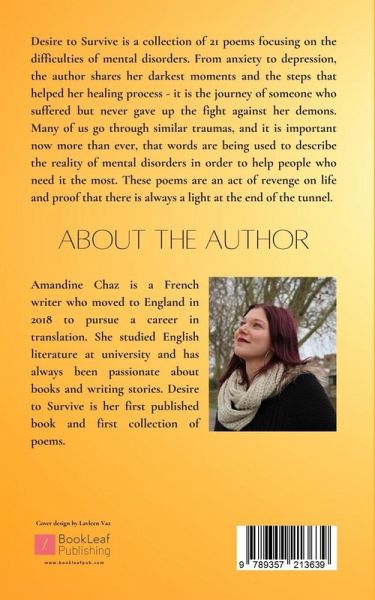 Desire to Survive is a collection of 21 poems focusing on the difficulties of mental disorders. From anxiety to depression, the author shares her darkest moments and the steps that helped her healing process it is the journey of someone who suffered but never gave up the fight against her demons. Many of us go through similar traumas, and it is important now more than ever, that words are being used to describe the reality of mental disorders in order to help people who need it the most. These poems are an act of revenge on life and proof that there is always a light at the end of the tunnel.