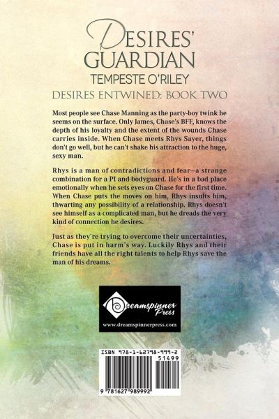 Desires Entwined: Book Two Most people see Chase Manning as the party-boy twink he seems on the surface. Only James, Chase's BFF, knows the depth of his loyalty and the extent of the wounds Chase carries inside. When Chase meets Rhys Sayer, things don't go well, but he can't shake his attraction to the huge, sexy man. Rhys is a man of contradictions and fear-a strange combination for a PI and bodyguard. He's in a bad place emotionally when he sets eyes on Chase for the first time. When Chase puts the moves on him, Rhys insults him, thwarting any possibility of a relationship. Rhys doesn't see himself as a complicated man, but he dreads the very kind of connection he desires. Just as they're trying to overcome their uncertainties, Chase is put in harm's way. Luckily Rhys and their friends have all the right talents to help Rhys save the man of his dreams.