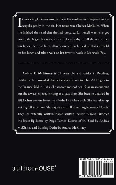 It was a bright sunny summer day. The cool breeze whispered to the seagulls gently in the air. Her name was Chelsea McQuire. When she finished the salad that she had prepared for herself when she got home, she began her walk, as she did every day to fill the rest of her lunch hour. She had hurried home on her lunch break so that she could eat her lunch and take a walk on her favorite beach in Marshalls Bay.
