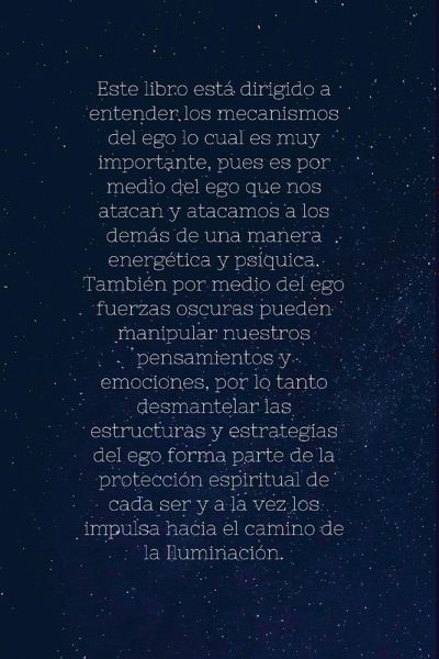 Este libro está dirigido a entender los mecanismos del ego lo cual es muy importante, pues es por medio del ego que nos atacan y atacamos a los demás de una manera energética y psíquica. También por medio del ego fuerzas oscuras pueden manipular nuestros pensamientos y emociones, por lo tanto desmantelar las estructuras y estrategias del ego forma parte de la protección espiritual de cada ser y a la vez los impulsa hacia el camino de la Iluminación.