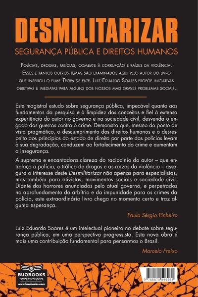 Segurança pública tem sido tema recorrente na agenda pública, mas sua transformação profunda nunca esteve em cogitação. Em Desmilitarizar: segurança pública e direitos humanos, o antropólogo Luiz Eduardo Soares coloca em questão as razões para o imobilismo brasileiro em face da questão da violência. A partir do entendimento dos problemas diagnosticados tanto na esfera pública quanto na privada, o autor oferece propostas e orientações claras para superá-los.Os quatorze ensaios aqui reunidos estão estruturados em quatro pilares temáticos: polícia, drogas, raízes da violência e direitos humanos. Somados à introdução e ao posfácio, formam um conjunto coeso que demonstra que a problemática da violência letal, inclusive a praticada pelo Estado, é decisiva para a reconstrução democrática e o combate ao racismo, aos preconceitos e às desigualdades. Não ficam de fora análises sobre as contraditórias UPPs, a guerra às drogas, a intervenção militar no Rio de Janeiro, o pacote anticrime do ministro Sérgio Moro e sobre relações entre o poder público e o crime organizado. E o livro conta ainda com um Glossário sobre segurança pública.Desmilitarizar vai além de uma reportagem jornalística ou mesmo da pesquisa acadêmica, seu maior objetivo é provocar mudanças em como encaramos a segurança pública no Brasil. Trazendo sua experiência como secretário Nacional de Segurança Pública, subsecretário de Segurança e coordenador de Segurança, Justiça e Cidadania do Estado do Rio de Janeiro, Luiz Eduardo Soares dirige-se não só a especialistas, mas também a ativistas, movimentos sociais, sindicatos e associações de policiais.