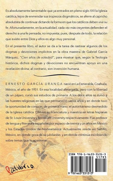 Se podría pensar que vincular la obra maestra Cien años de soledad de Gabriel García Márquez con cuestiones teológicas sería una locura. Sin embargo, en la novela del colombiano -como lo señalara Joaquín Marco en su Estudio introductorio a Cien años de soledad- "Aparecen abundantes elementos religiosos propios de la liturgia católica" que sugieren que no se trata de una simple casualidad; al contrario, todo parece que dichas referencias se dan con toda intención. En el presente trabajo, Ernesto García Uranga toma su lupa y emprende una búsqueda de las referencias a dogmas y devociones católicos presentes en Cien años de soledad. Usando como aval a la Teología histórica para justificar sus argumentos, el investigador se da a la tarea de demostrar que el novelista sudamericano desmitifica, de una manera deliberada, por medio de la parodia, ciertos dogmas y devociones impuestos a los creyentes católicos por el Magisterio de la Iglesia. En este ensayo de ninguna manera se sugiere que dichos dogmas y devociones deben ser eliminados de la cultura religiosa católica; en su lugar, García Uranga deja en claro que, según lo entiende, la verdadera finalidad de la desmitificación que lleva a cabo Gabriel García Márquez en Cien años de soledad es la de conferir a los mencionados dogmas y devociones una interpretación más humana y menos divina a la luz de la justicia social, pues en su forma actual carecen de verdadero significado para el piadoso católico, y, lo que es aún más grave, no encuentran apoyo en las Sagradas Escrituras. "Se requiere", dice el autor de este estudio -citando al decano de la Teología moral católica, profesor Bernard Häring- "de un luto por parte de la Iglesia, de la cabeza y sus miembros, por tantas doctrinas falsas que son constantemente reafirmadas". De lo contrario, si el Vaticano continúa haciendo gala de su terquedad, anteponiendo el Derecho canónico a los Evangelios para la conducción de la Iglesia, se expone a que muchos católicos simplemente le den la espalda. De ahí que sea imprescindible, remata el estudioso, que la Iglesia entienda, como lo puntualiza Leonardo Boff, que "el espíritu de la modernidad no se orienta por la autoridad, sino por la participación". En estos momentos de cambio las ovejas rehúsan permanecer quietas en su redil, ya no se les puede obligar a que crean ciegamente. De ahí que se da por sentado que "Los seres humanos libres" -como indica Mary E. Hines- "tienen el derecho a razones claras por las cuales se les exige creer".