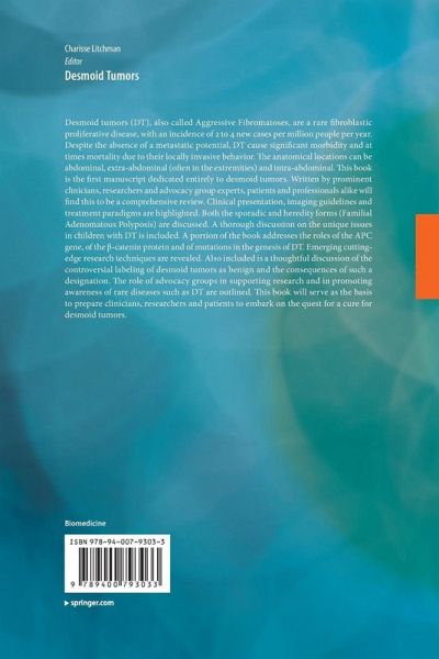 Desmoid Tumors (DT), also called Aggressive Fibromatoses, are a rare fibroblastic proliferative disease, with an incidence of 2 to 4 new cases per million people per year. Despite the absence of a metastatic potential, DT cause significant morbidity and at times mortality due to its locally invasive behaviour. The anatomical locations can be abdominal, extra-abdominal (often in the extremities) and intra-abdominal. This book is the first manuscript dedicated entirely to Desmoid Tumors. Written by prominent clinicians, researchers and advocacy group experts, patients and professionals alike will find this to be a comprehensive review. Clinical presentation, imaging guidelines and treatment paradigms are highlighted. Both the sporadic and heredity forms (Familial Adenomatous Polyposis) will be discussed. A thorough discussion on the unique issues in children with DT is included. A portion of the book will address the role of the APC gene, the beta-catenin protein and the role of mutations in the genesis of DT. Emerging cutting edge research techniques will be revealed. Also included is a thoughtful discussion on the controversial labelling of Desmoid Tumors as benign and the consequences of such a designation. The role of advocacy groups in supporting research and in promoting awareness of rare diseases such as DT will be outlined. This book will serve as basis to prepare clinicians, researchers and patients to embark on the quest for a cure for Desmoid Tumors.