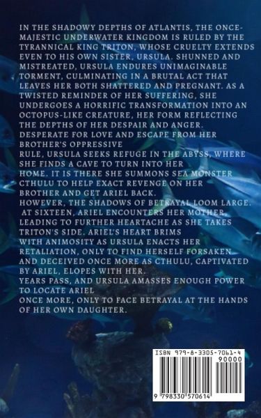 In the shadowy depths of Atlantis, the once-majestic underwater kingdom is ruled by the tyrannical King Triton, whose cruelty extends even to his own sister, Ursula. Shunned and mistreated, Ursula endures unimaginable torment, culminating in a brutal act that leaves her both shattered and pregnant. As a twisted reminder of her suffering, she undergoes a horrific transformation into an octopus-like creature, her form reflecting the depths of her despair and anger. Desperate for love and escape from her brother's oppressive rule, Ursula seeks refuge in the abyss Where she finds a cave to turn into her home. It is there she summons sea monster Cthulu to help exact revenge on her brother and get Ariel back. However, the shadows of betrayal loom large. At sixteen, Ariel encounters her mother, leading to further heartache as she takes Triton's side. Ariel's heart brims with animosity as Ursula enacts her retaliation, only to find herself forsaken and deceived once more as Cthulu, captivated by Ariel, elopes with her. Years pass, and Ursula amasses enough power to locate Ariel once more, only to face betrayal at the hands of her own daughter.