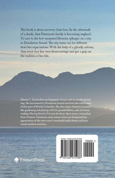 This book is about recovery from loss. In the aftermath of a death, Ann Patterson's family is becoming unglued. To save it, the hot-tempered librarian splurges on a trip to Desolation Sound. The trip turns out far different from her expectations. With the help of a ghostly adviser, Ann must face her own shortcomings and get a grip on the realities of her life.